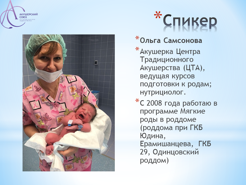 Спикером выступила Самсонова Ольга, акушерка Центра Традиционного Акушерства, работающая в профессии более двадцати лет