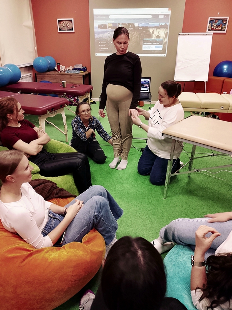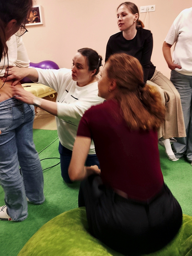 Особое внимание уделили работе с физиологическими блоками — напряжением мышц, дыханием, эмоциональным состоянием, — которые могут мешать прогрессу родов. Участники отрабатывали техники мягкой коррекции, направленные на восстановление гармонии между телом и психикой рожающей женщины.